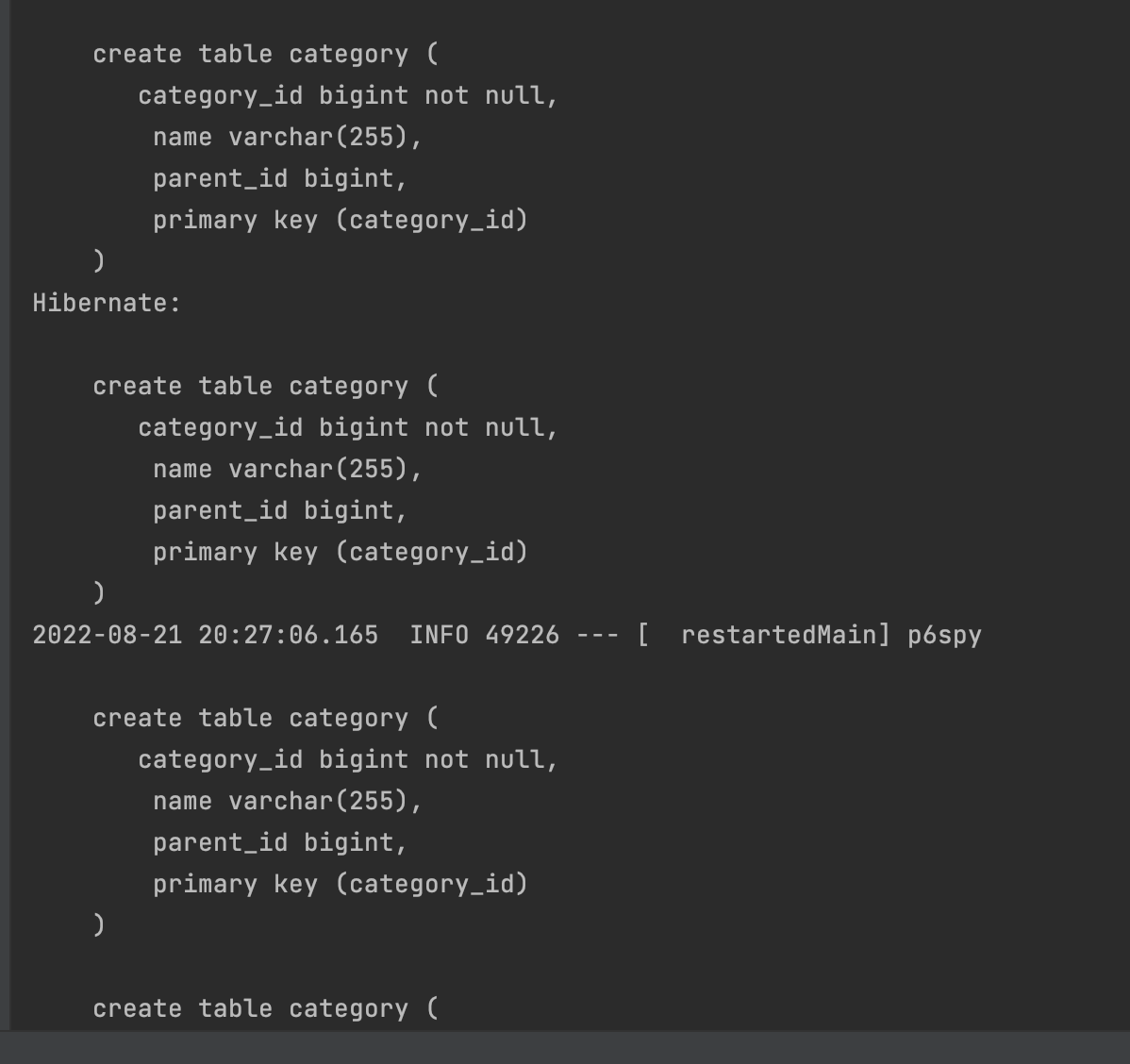 Hibernate를 통한 SQL 생성 로그