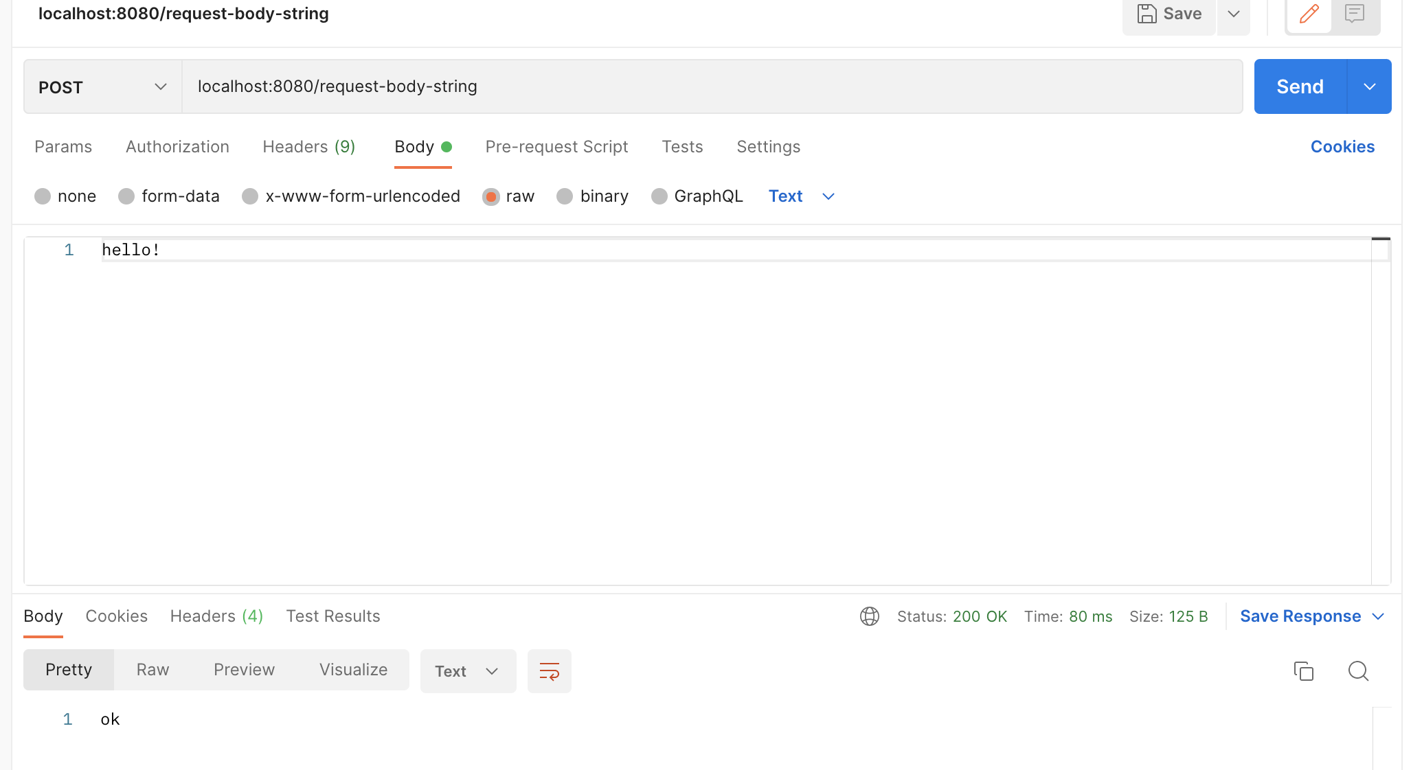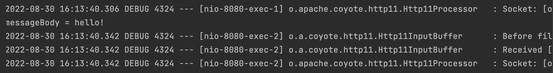 웹에서 서버로 TEXT 데이터가 전달된 것을 확인할 수 있다.