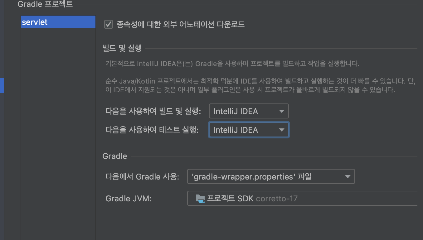 -. Preference > Gradle입력 후 IntelliJ IDEA로 변경 (무료 버전일 경우에는 War에서는 Gradle을 사용)