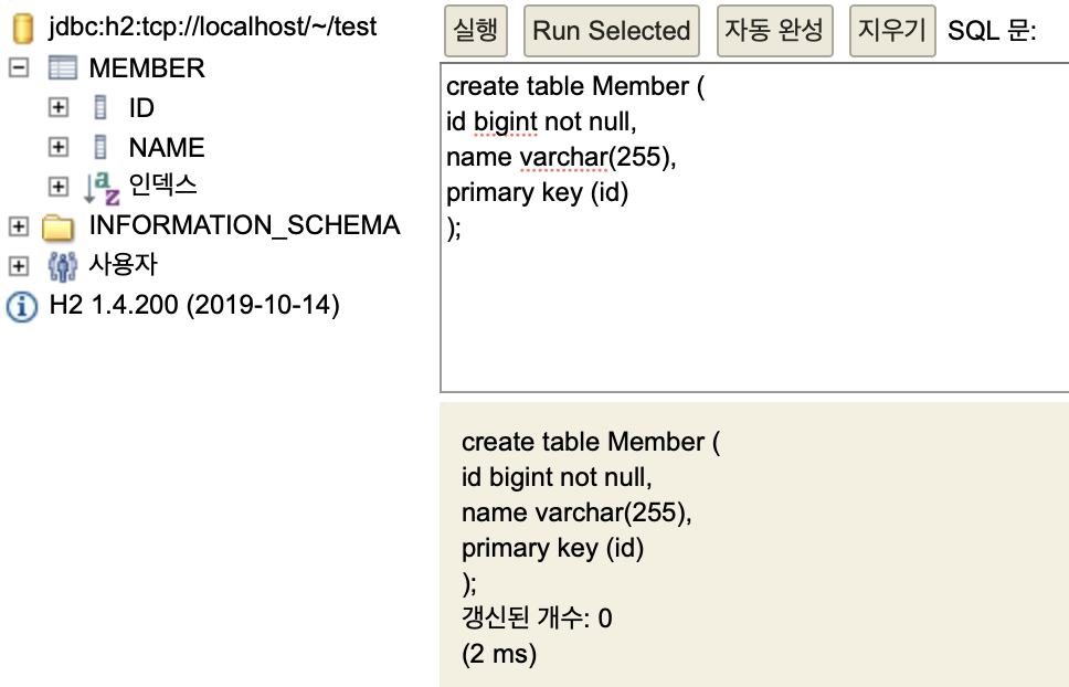 H2Database 설정은 이전 포스팅에 있다. (xml에서 H2db 버전은 맞춰야 한다)