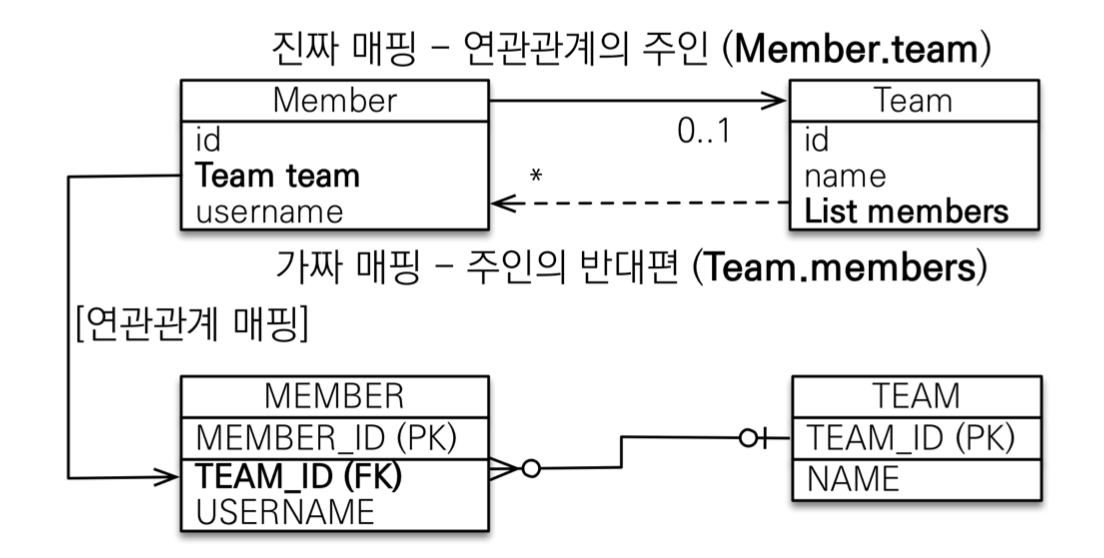 하지만, 테이블의 입장에서는 member에서 외래키를 주어준다면 양쪽으로 연관관계를 지닐 수 있다.
