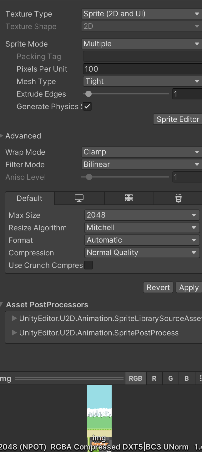 (유니티 2D게임 만들기) 유니티 플래피버드 클론 게임 (이미지 등록 및 속성 변경) 본문