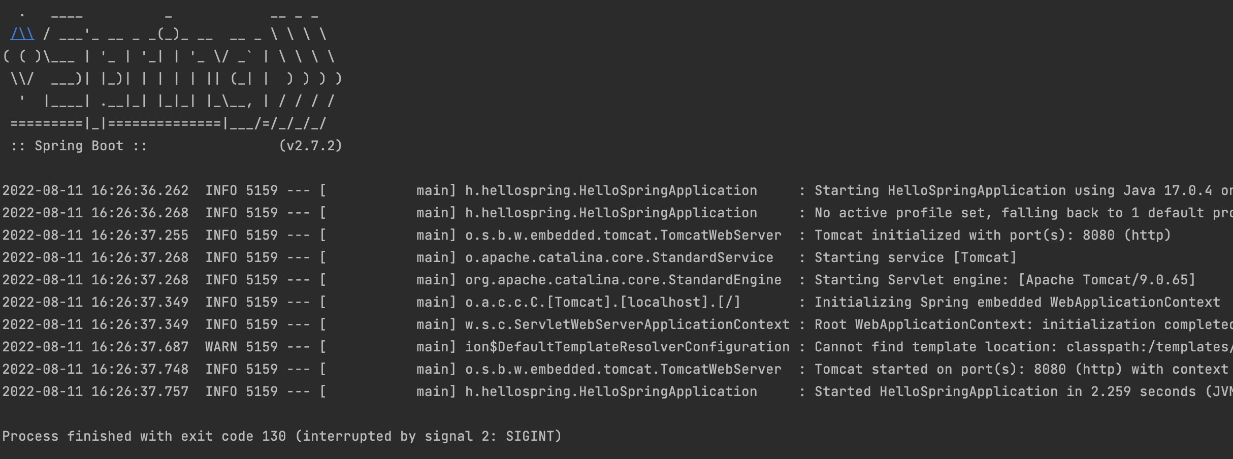 실행이 된지 확인하는 방법: localhost:8080을 웹사이트에 입력